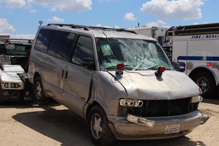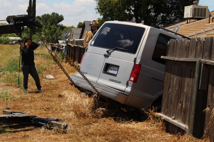 Upon arrival, officers located a damaged fence with a van partially inside one apartment building.