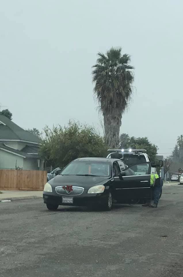 At approximately 1:20 p.m., a report of a traffic collision involving a pickup and (vehicle pictured) on Drakeley Avenue /Sierra Vista Street was reported in Atwater.
